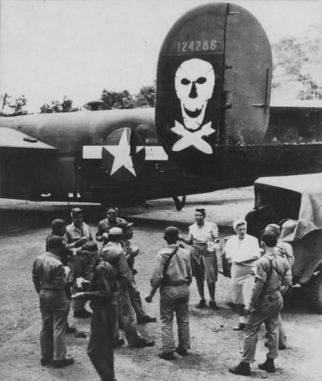 The 90th Bombardment Group, nicknamed "Jolly Rogers," earned a fierce reputation in the Pacific theater flying B-24 Liberators. Known for its bold skull-and-crossed-bombs insignia, the group flew extensive missions across New Guinea, the Philippines, and surrounding Pacific islands during World War II. The group's 320th Bomb Squadron was one of four squadrons within the 90th, participating in daring airstrikes that earned multiple Distinguished Unit Citations for their Pacific campaign operations.